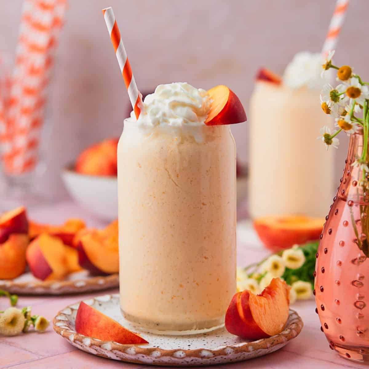 🍑🥛 Peach Milkshake – A creamy blend of juicy peaches and chilled milk, whipped to perfection. Smooth, rich, and naturally sweet – the perfect fruity treat to refresh your day! ❄️✨