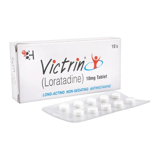 Victrin 10mg Tablet is an antihistamine medication used to relieve symptoms of allergies such as runny nose, sneezing, and itching, as well as to treat skin conditions like hives and itching.